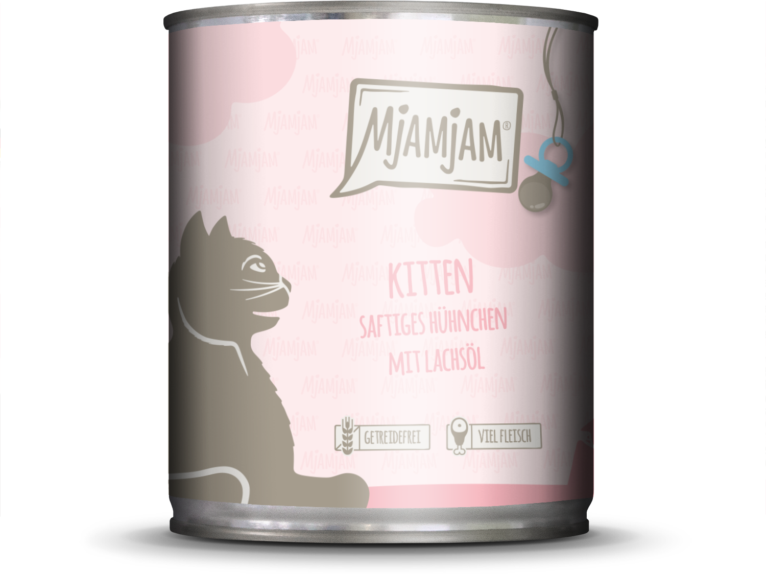 Het natvoer van Mjamjam verwent je kitten met een rijke smaak, onvergelijkbare kwaliteit en een snufje liefde. Je kleine tijger kan rekenen op een gezonde maaltijd van malse kip gecombineerd met hoogwaardige zalmolie. Zodat het je lieveling aan niets ontbreekt.