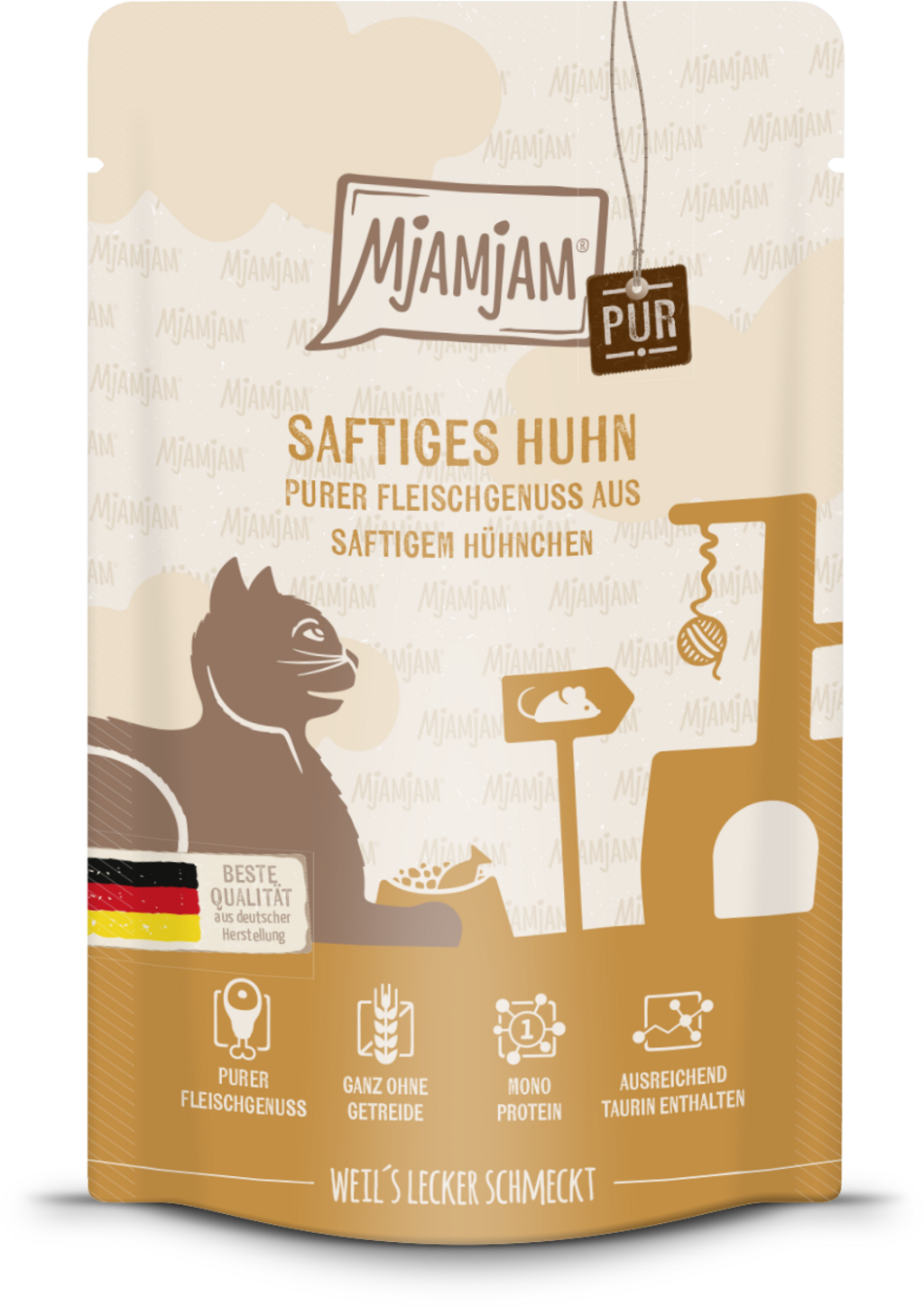 Mjamjam gelooft niet in granen, suiker, conserveringsmiddelen, smaakstoffen of synthetische bindmiddelen. Daarom worden deze uiteraard niet gebruikt in dit smakelijke voer. Vrij van lactose, plantaardige bijproducten en diermeel. Met taurine.