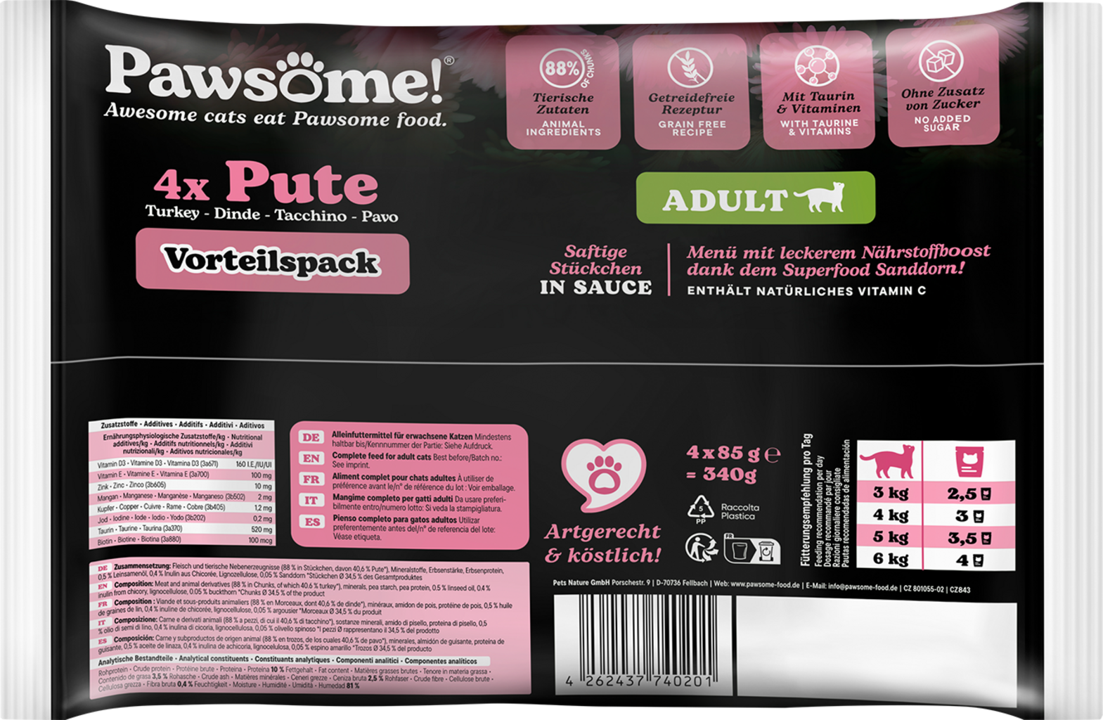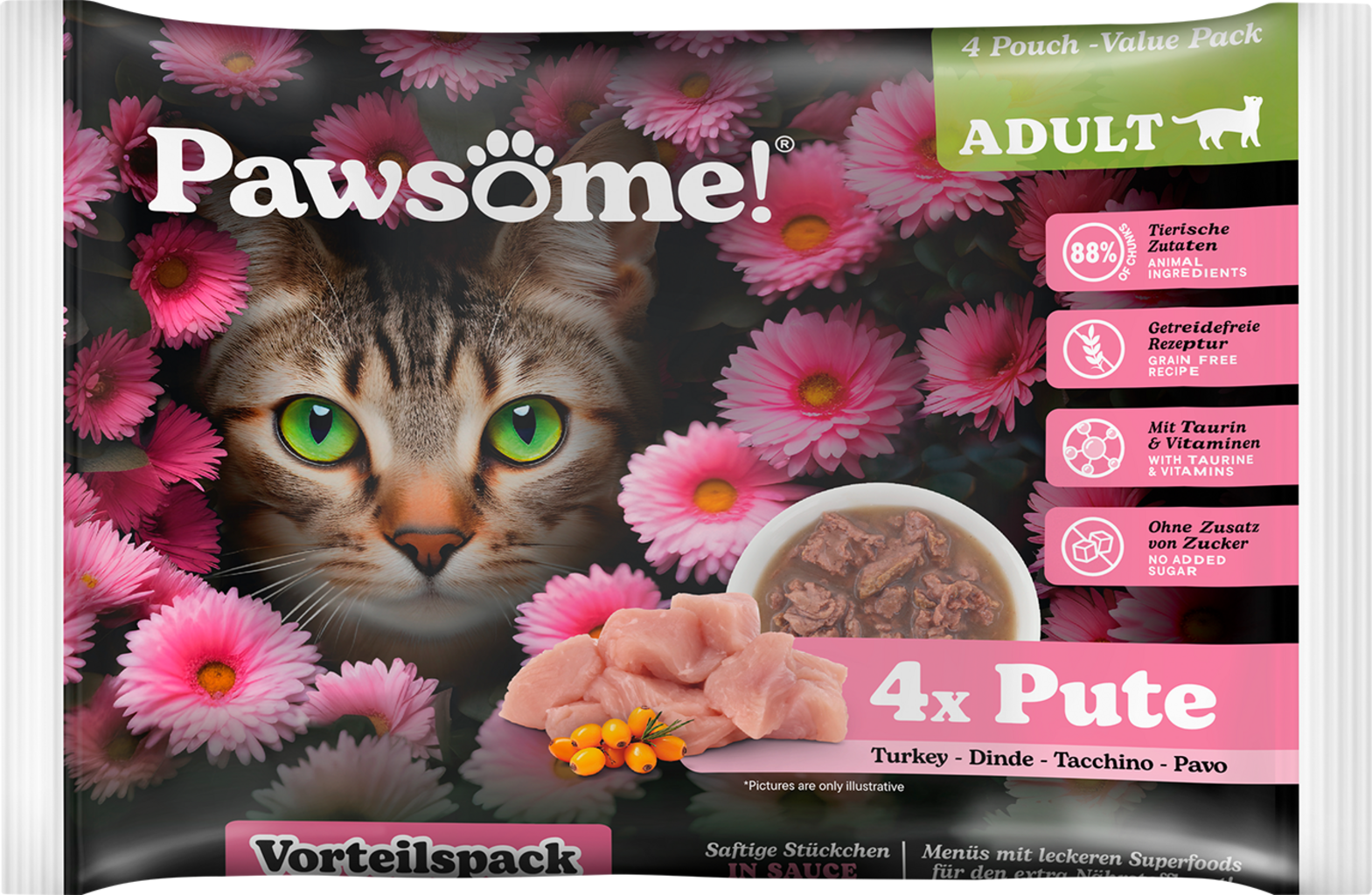 Pawsome! Adult Kalkoen, 4 x 85 g (340 g)