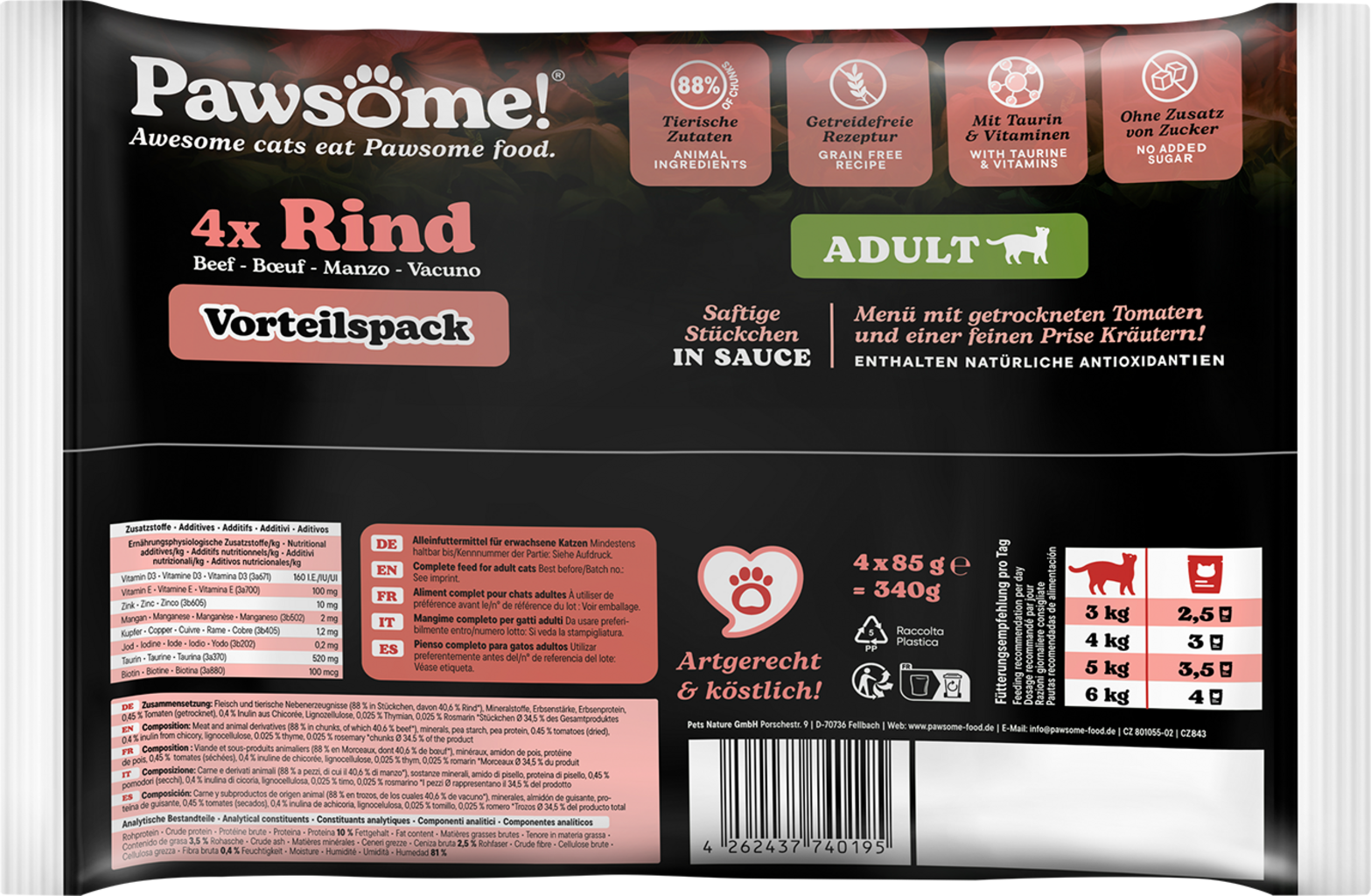 Pawsome! Adult Rund, 4 x 85 g (340 g)