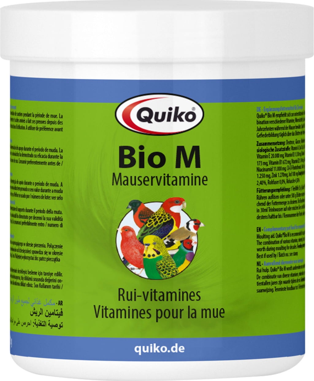 Quiko BIO-M bevat een hoogwaardige mix van vitaminen, mineralen en extra biotine en ondersteunt een normale vitaminevoorziening van je siervogels tijdens de rui.