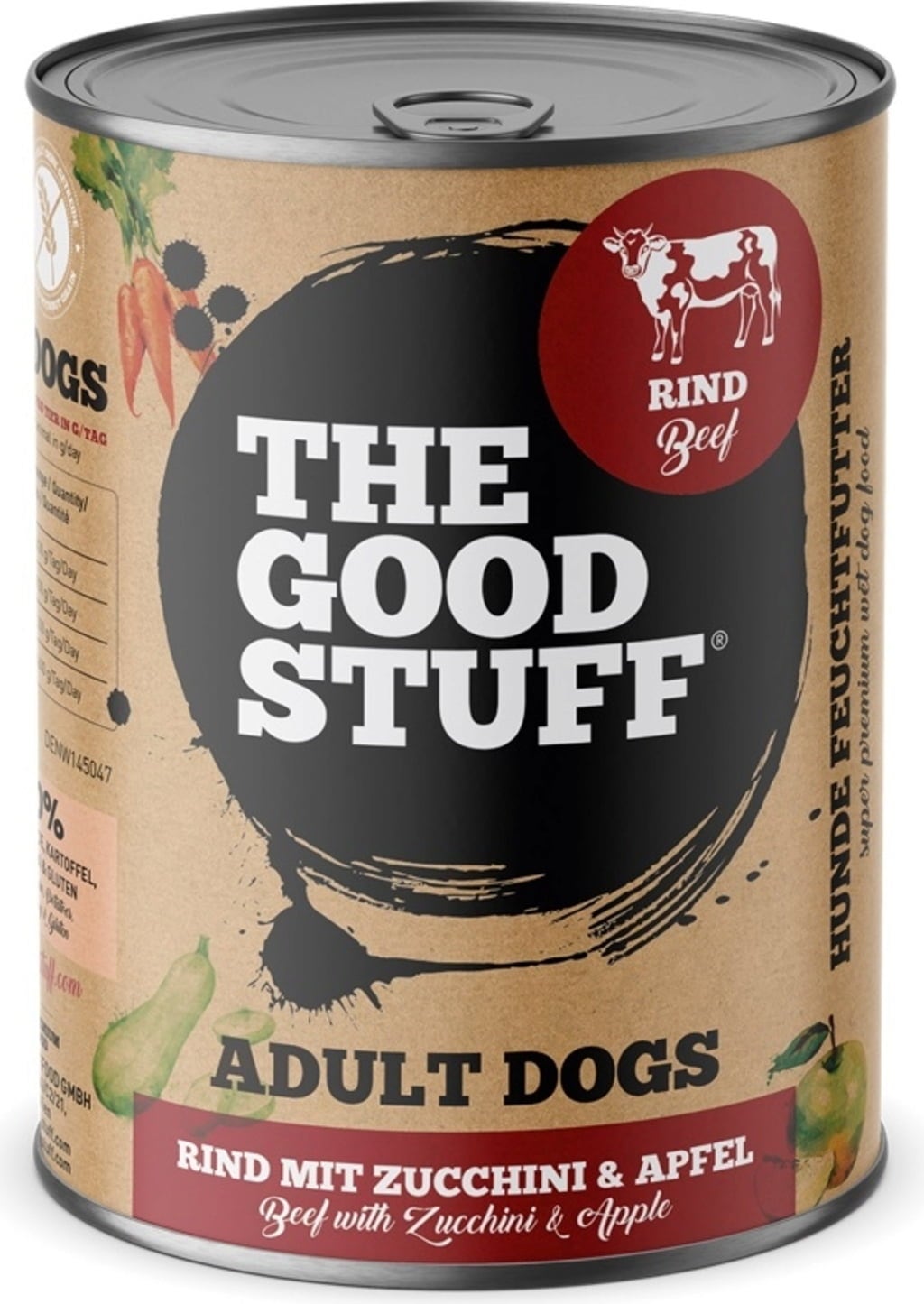 De Goodstuff Natvoer Adult Rund en Courgette is een super premium compleetvoer voor volwassen honden van alle rassen en maten. Het is rijk aan vers runderspiervlees en hoogwaardig orgaanvlees, zoals hart-, lever- en pensvlees van voedingskwaliteit, lokaal beschikbare groenten en fruit, en geselecteerde kruiden.