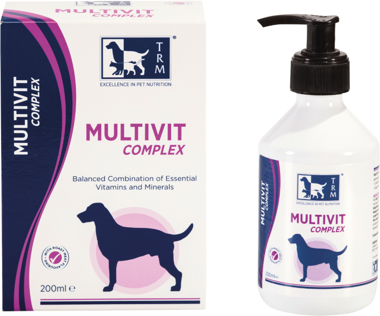 Het Multivit Complex van TRM is een voedingssupplement voor honden dat verrijkt is met vele vitaminen en sporenelementen. Het kan gemakkelijk door het voer gemengd worden en is geschikt voor alle rassen en alle leeftijdsgroepen. Multivit Complex is zeer geschikt voor ondervoede of verweesde puppy's, werkhonden, wedstrijdhonden, drachtige teven, oudere honden en honden die herstellen van ziekte.