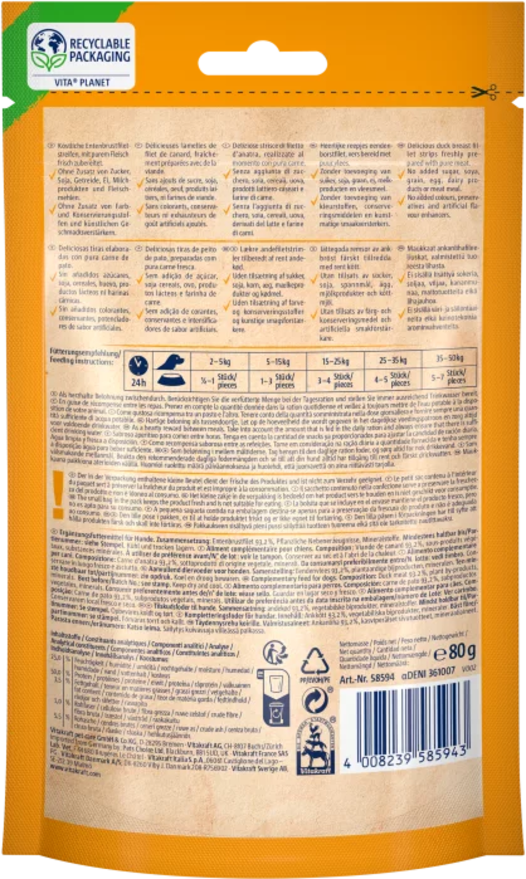 Vitakraft Honden Snack - Eendenvleesreepjes, 80 g