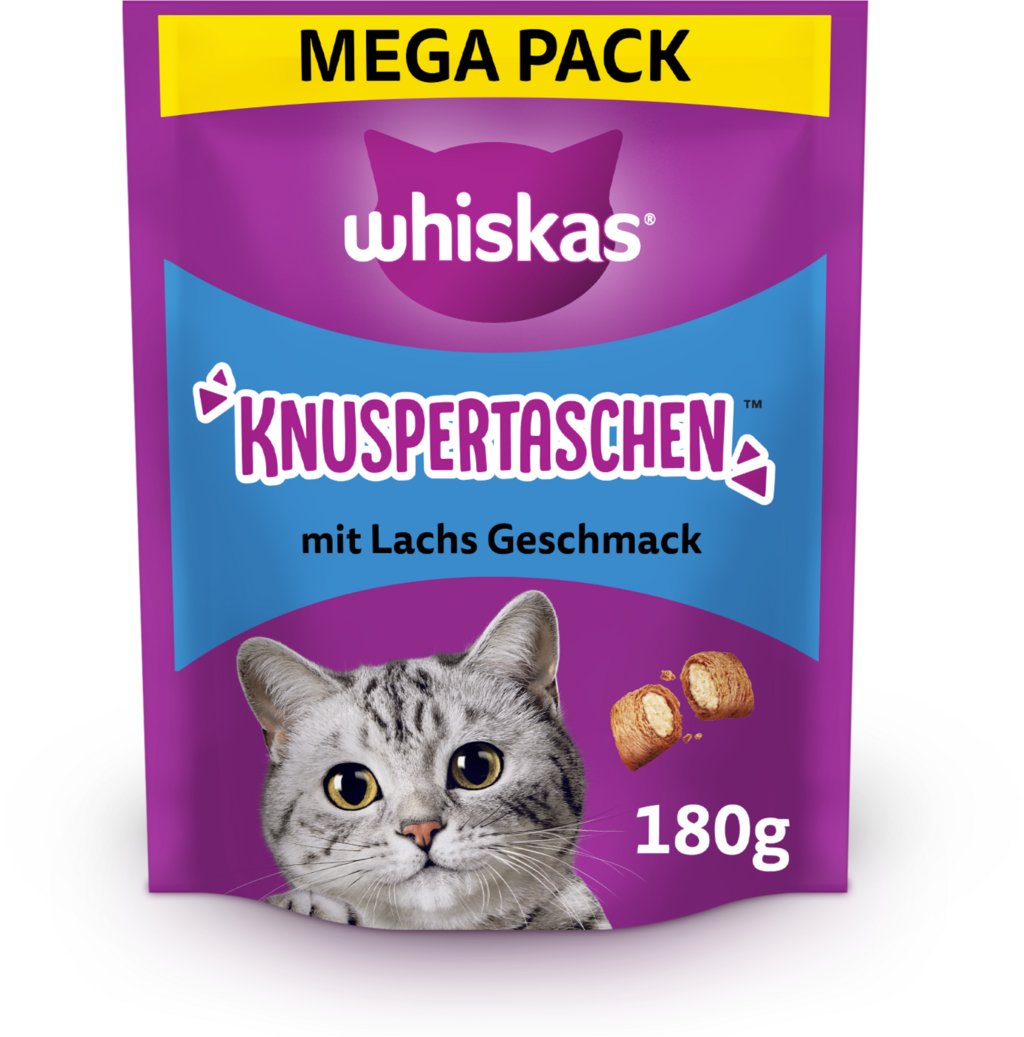 De "Knuspertaschen" van Whiskas zijn een onweerstaanbaar lekker tussendoortje! De smakelijke combinatie van sappige kern en knapperig omhulsel is een waar genot voor je kat.